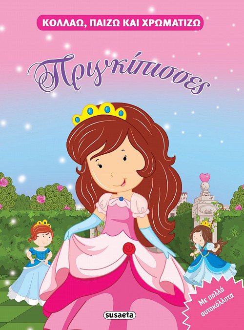Αφού χρωματίσεις τις γλυκές πριγκίπισσες, κόλλησε τα αυτοκόλλητα στο μεγάλο σκηνικό και φτιάξε με τη φαντασία σου πρωτότυπες πριγκιπικές ιστορίες!